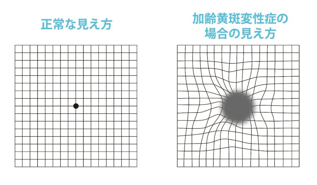 図6.加齢黄斑変性の症状(中心部のゆがみと中心暗点)