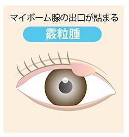 眼瞼(まぶた)の中にできた小さな固い腫瘤です。涙の成分を分泌する脂の腺(マイボーム腺)の出口がつまり、その中に粥状の分泌物がたまって肉芽腫を形成したものです。麦粒腫と異なり、細菌感染を伴わない無菌性の炎症です。